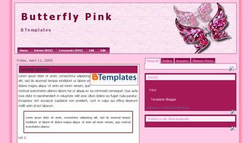 Free Butterfly Pink Blogger Template ~ blogger templates free blogspot template o template otemplate