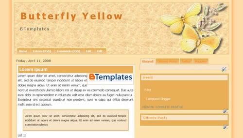 Free Butterfly Yellow Blogger Template ~ blogger templates free blogspot template o template otemplate